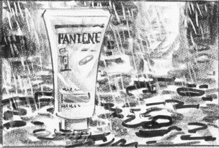 Hair products are about wetness and cleanliness, showing how hair shines, products sparkle, surfaces reflect.